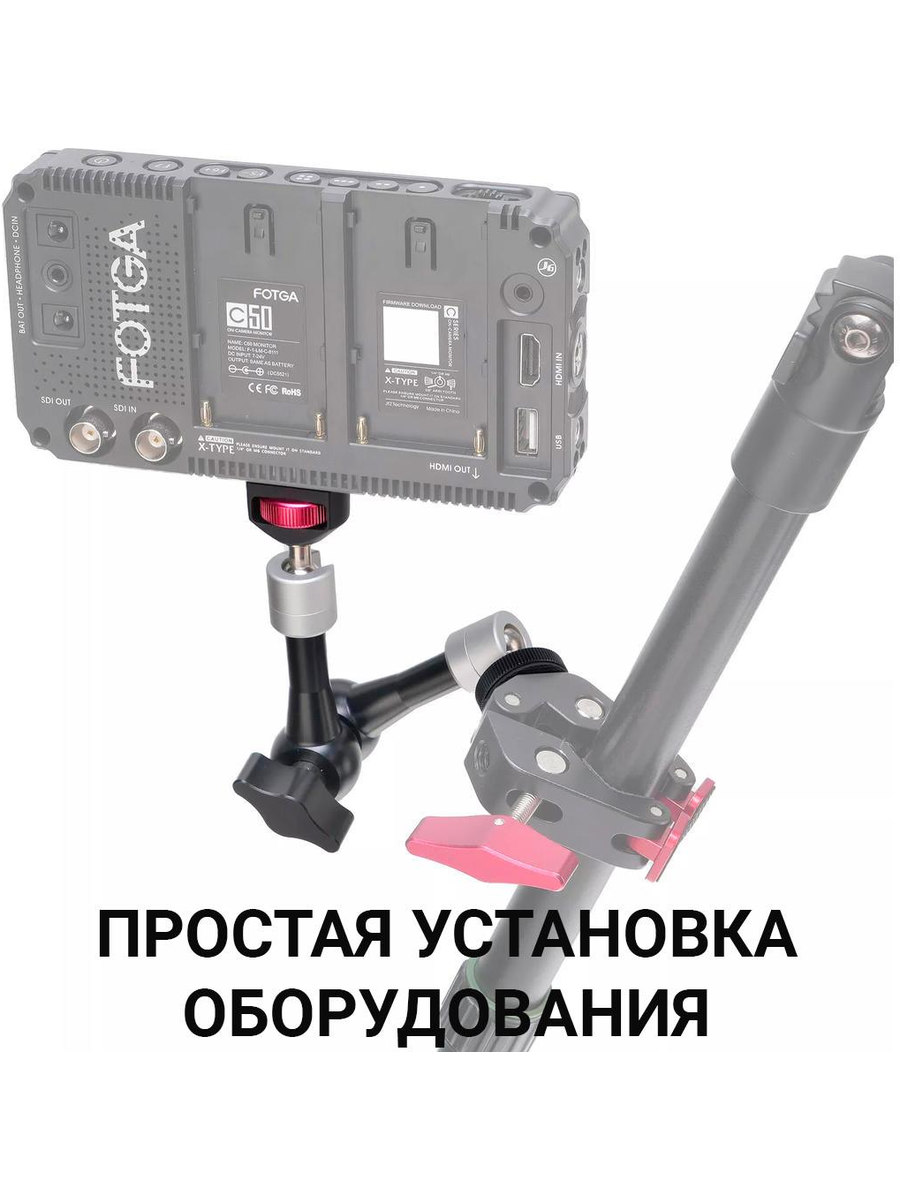 Шарнирный кронштейн Zarrumi Magic Arm 07 II — универсальный адаптер для установки фото- и видеоаксессуаров с резьбой 1/4". Представляет собой прочную металлическую конструкцию с подвижными шарнирами, позволяющую фиксировать дополнительное оборудование на нужной позиции и в различных плоскостях.