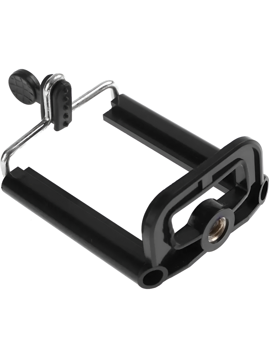 Универсальный держатель для крепления смартфона на любой штатив с резьбой 1/4". Регулируемый зажим надежно фиксируют телефон. Совместим с большинством моделей смартфонов, отлично подойдет для съемки видео, стримов и фотосессий.